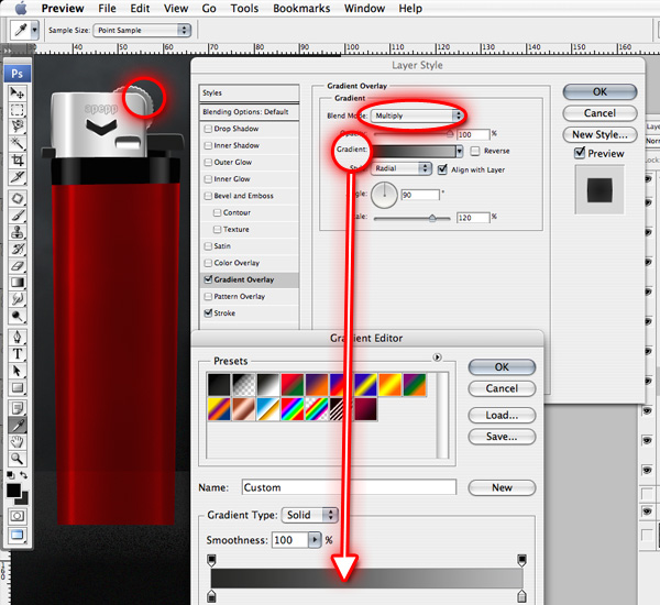 ...layer "Red Casing" gradient overlay...